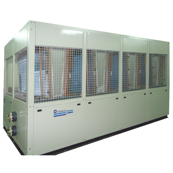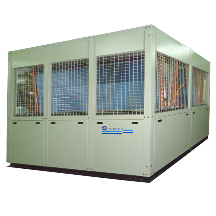 天基蒸發式冰水機組採用的蒸發式冷凝器,利用噴淋水霧先使空氣充分濕潤,再透過其蒸發作用吸收鰭片盤管內的高溫氣態冷媒的熱量。此設計兼具氣冷式冷凝器體積精簡及水冷式冷凝器絕佳熱交換效率的優點。即便在停水狀況,仍具備有氣冷式冷凝器的基本能力,而不至於造成無法使用的窘境。天基蒸發式冰水機組冷凍能力自70KW ~463KW(約20RT~120RT)。透過多壓縮機及冷媒系統迴路並聯設計,搭配容量調整或變頻控制等方式,可依實際工況隨意調整負載,同時確保機組安全性及經濟性。淺顯易懂的人機操作介面,讓非專業人員也能輕易的進行監控、記錄、操作、故障排除等動作,大幅減少人員的訓練成本與時間。